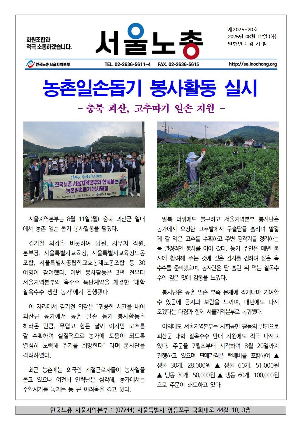 서울노총 소식 2025-20호